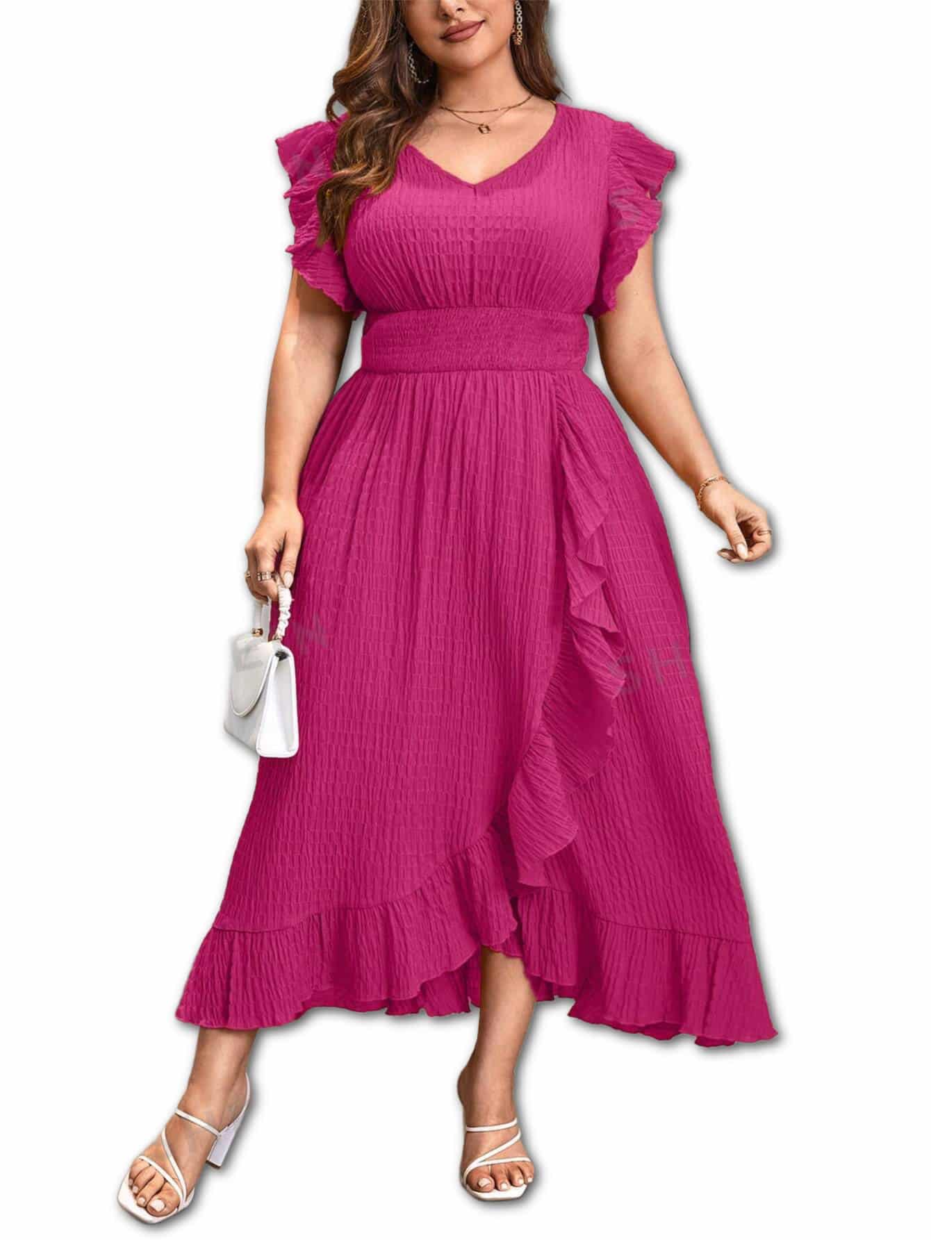 The Ruffle Trim Wrap Hem Dress is a stunning, long-length stylish dress that is an ideal style for those long, warm summer days/evenings. Always in fashion and available in four colours up to a UK24 size.